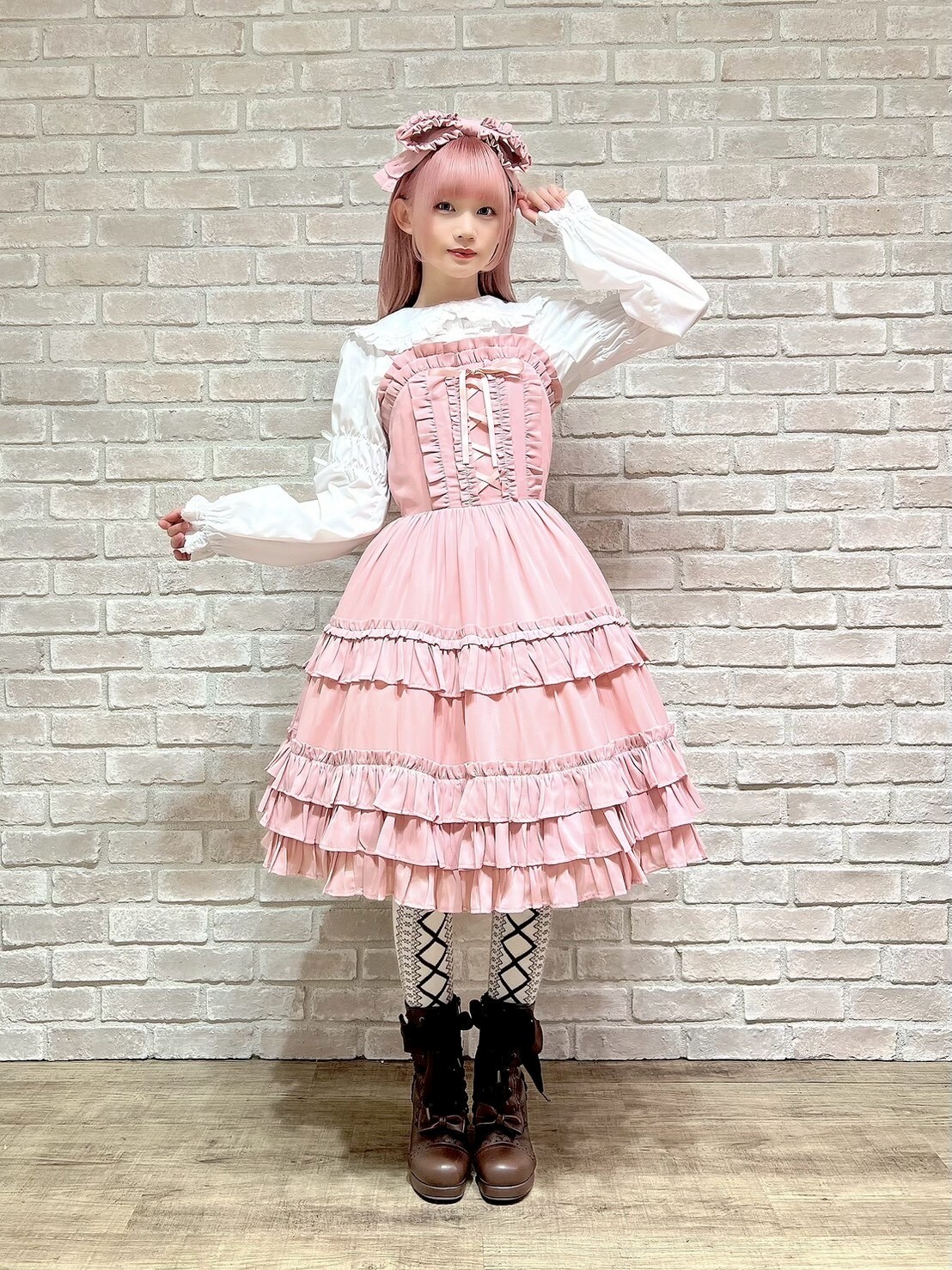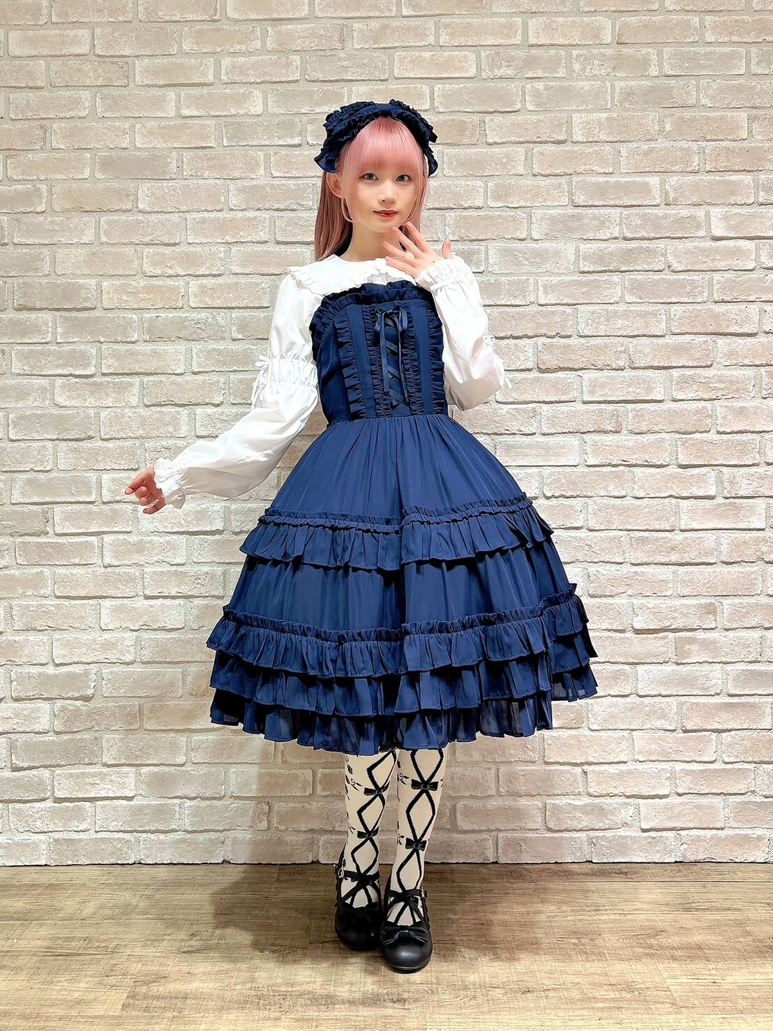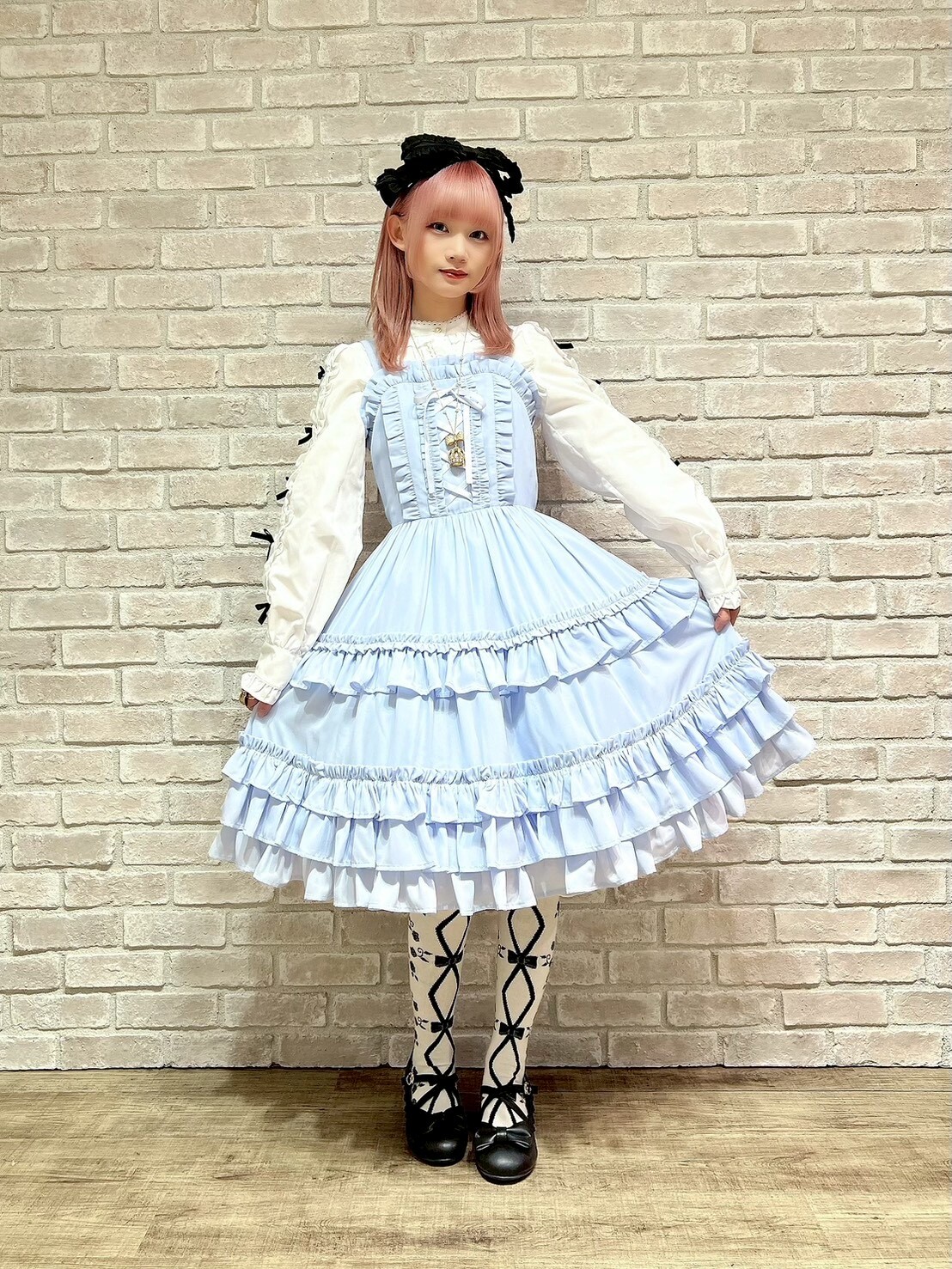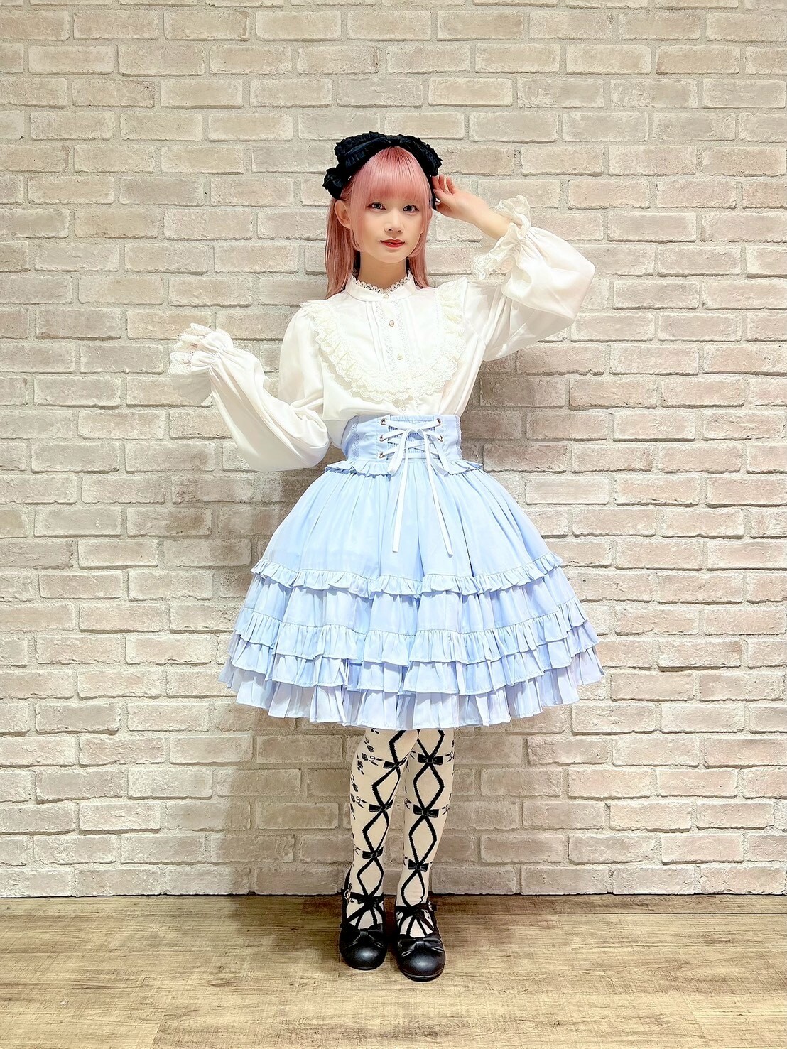 A versatile new collection with lace-up details and lots of frills🩷 Along with the georgette jumper skirt full of frills, this set comes with a blouse with a standout yoke design, ready to pair with a high-waisted, slightly shorter skirt! Add the huge ribbon-shaped headdress and enjoy all year round🩵