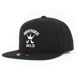 KINGSIZEの代名詞ともいえる「HiGEロゴ」と「No.5」をフロントに配した、ブランドアイデンティティ溢れるスナップバック。
