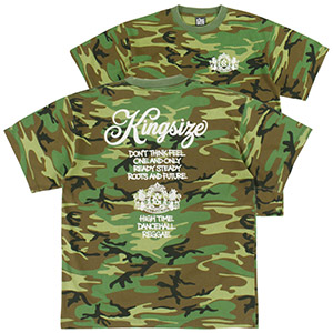 唯一無二の存在感。KINGSIZEが放つメッセージ・グラフィックをオンしたカモTシャツ!