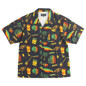 ジャマイカの空気感をそのまま詰め込んだオープンカラーシャツが登場。サウンドシステム、レコード、ジャークパン、タバコパッケージなど、レゲエカルチャーを象徴するアイコンを贅沢に総柄で配しました。素材には肌馴染みの良い綿100%を採用し、サイドスリット入りのボックスシルエットが、リラックス感のある大人のストリートスタイルを演出します。ブランドのバックボーンを存分に感じられる、春夏シーズンにマストな一着です。ブラックベースのラスタカラーと、クリーンなモノトーンの2色展開で、異なる表情を楽しめます。デニムやチノパンツなど好相性で着回ししやすく、デイリーユースで大活躍するユニセックスでオススメのアイテムです。